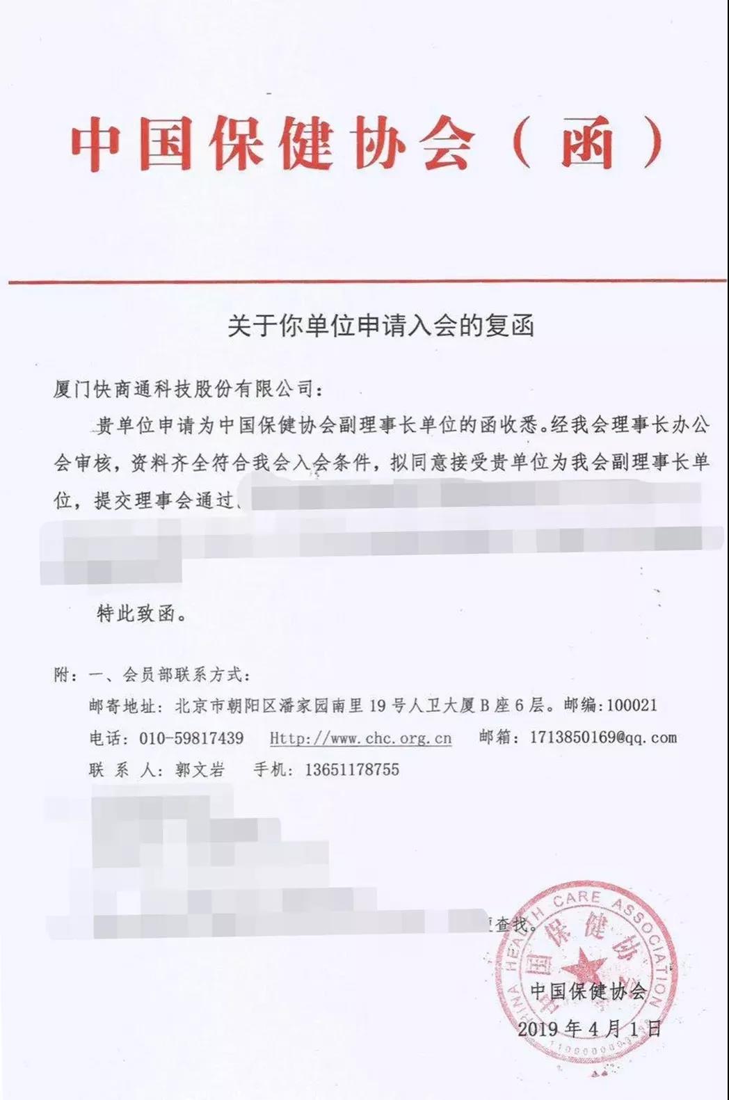 喜報|祝賀快商通成為由國務院批準成立的中國保健協會副理事長單位